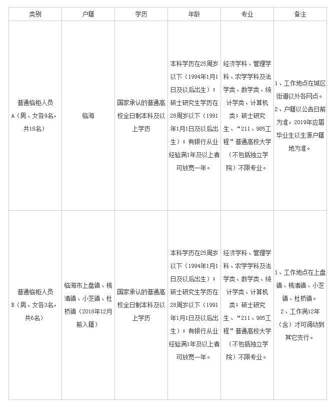 原標題:浙江臨海農村商業銀行股份有限公司2019年招聘簡章