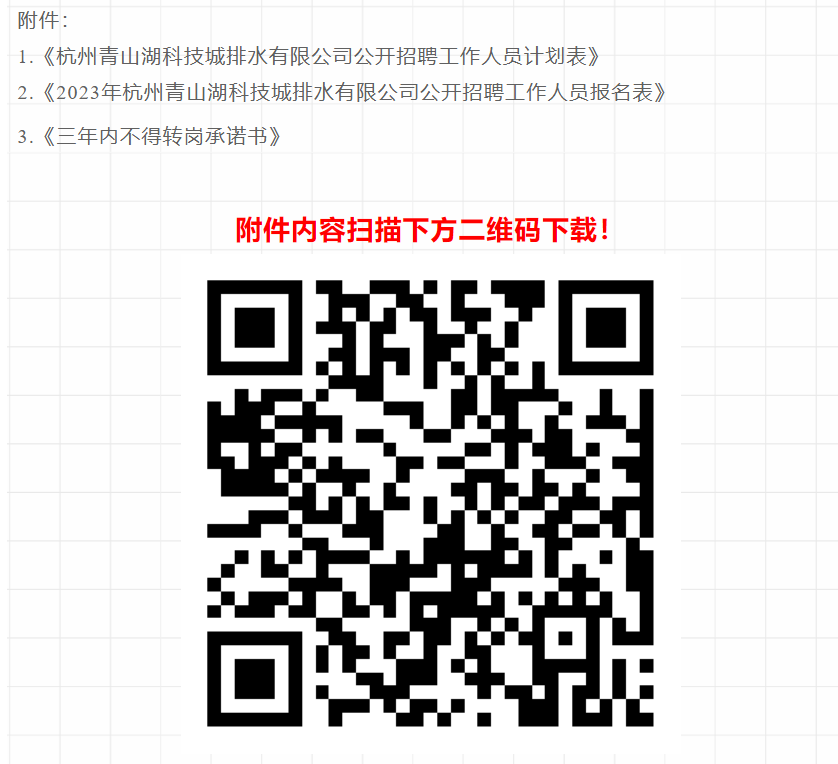 7.招聘其他條件以《2023年杭州青山湖科技城排水有限公司公開招聘工作人員計劃表》(附件1)明確的為準。